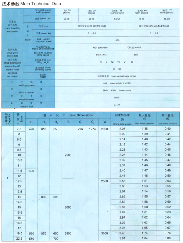 LDA model single beam motor crane is improved and designed on the basis of LD model.It is characterized by more reasonable structure and higher strength steel as a whole .Used together with CD1 model,MD1 model electric hoist as a complete set,it is light duty crane with a capacity of 1 to 10 tons.The span is 7.5-22.5m.Working grade is A3-A5,Working temperature is -25℃ to 40℃.