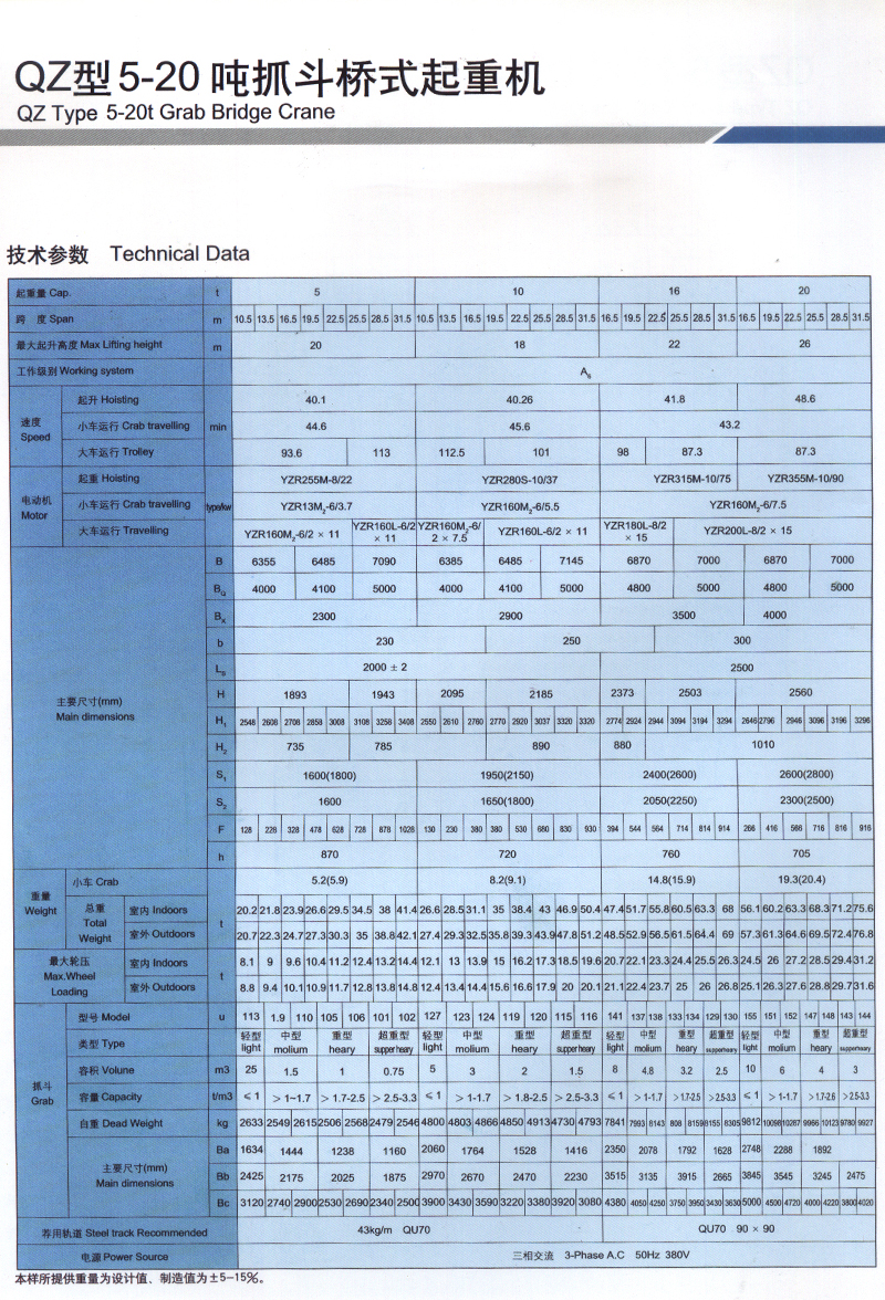 3、起重量包括抓斗自重。