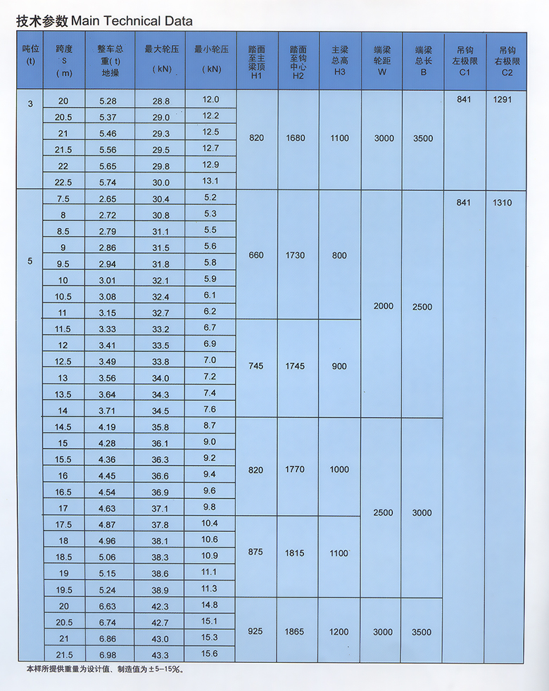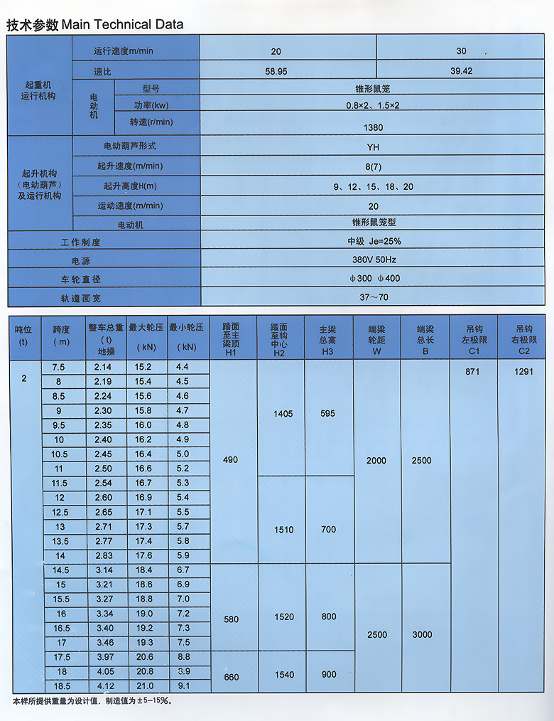 (1)起重机的电源为三相交流,额定频率为 50Hz,额定电压为 380V(如电源电压、频率与此规定不 同时,应在订货时注明使用地的电源电压和频率), 电动机和电器控制设备上允许电压波动的上限为额定电 压的+10%,下限(尖峰电流时)为额定电压的-15%。龙辉起重,起重机内部电压损失为 5%。